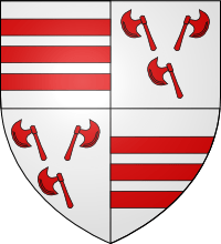 Sur la partie gauche des armoiries de la tapisserie – la lecture s’effectuant depuis la personne porteuse du blason, donc à droite de l’image ci-dessus -, figure le lion rouge à queue fourchue symbole des membres de la famille de Luxembourg. Les fleurs de lys sur fond bleu et les deux poissons dos à dos appartiennent aux armoiries de la famille de Bar. Il s’agit donc du blason de Jacqueline de Luxembourg (v. 1437-1511), fille aînée de Louis de Luxembourg Saint-Pol, comte de Brienne, et de Jeanne de Bar. Jacqueline a plusieurs soeurs et frères dont l’aîné, Pierre de Luxembourg Saint-Pol, qui épousera Marguerite de Savoie. Le seul enfant survivant de cette union sera Marie, qui naît vers 1470. Marie de Luxembourg épouse d’abord Jacques de Savoie puis en secondes noces François de Bourbon (1470-1495), comte de Vendôme le grand-père maternel de Marie de Lorraine, future duchesse de Longueville et reine et régente d’Écosse le personnage principal de ce blog.