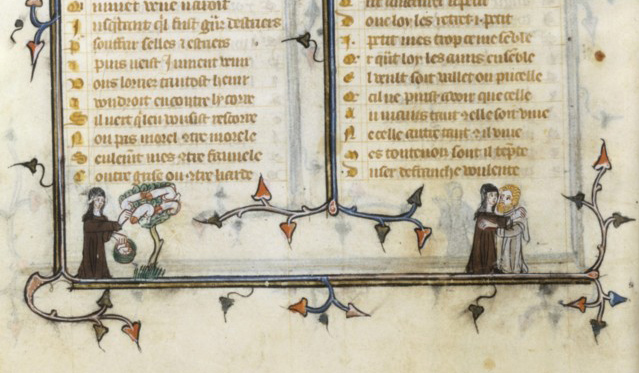 A nun plucking penises from a penis tree. ‘The Romance of the rose’, 14th century manuscript (detail), FR 25526 © Bnf, Paris