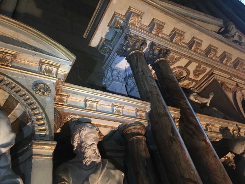 Vue de l’architecture du retable dit des Apôtres, détail. Reims, cathédrale Notre-Dame, transept sud. Photo © Annette Bächstädt, 2022.
